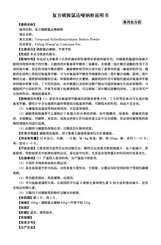 用于畜禽大肠埃希菌和巴氏杆菌感染。