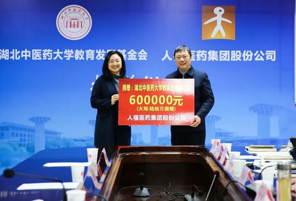3月23日,好体育app全站官方登录入口集团与湖北中医药大学教育发展基金会举行捐赠仪式,好体育app全站官方登录入口集团旗下武汉人福医疗管理有限公司向湖北中医药大学教育发展基金会捐赠60万元。捐赠将在学校教育发展基金会设立“武汉人福医疗专项基金”,用于大学生创新创业项目扶持,培育创新创业成果;支持中医药产业发展相关的人才培养;助力校友活动。湖北中医药大学党委书记唐峻,湖北中医药大学校长、教育发展基金会副理事长吕文亮,湖北中医药大学副校长、教育发展基金会副理事长黄必胜,湖北中医药大学校党委常委张子龙,好体育app全站官方登录入口集团总裁邓霞飞、好体育app全站官方登录入口集团党委副书记孔娜、武汉人福医疗管理有限公司董事长曾志敏等领导共同参加捐赠仪式。