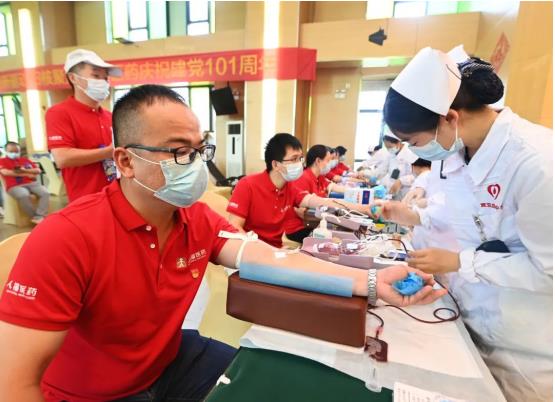 6月29日,武汉市卫生健康委、武汉血液中心与好体育app全站官方登录入口集团联合开展“党旗飘扬 热血人福”党建共建活动,以实际行动庆祝中国共产党成立101周年。活动当天,近200多名党员和职工“热血集结”、奉献爱心,最终121人成功献血32260毫升。